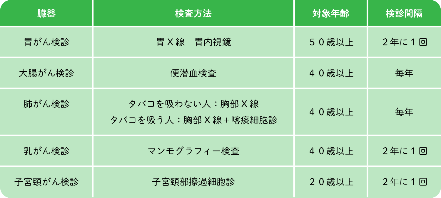 受診をおすすめするがん検診