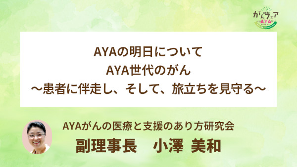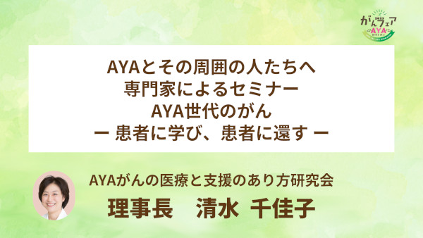 『AYAとその周囲の人たちへ 専門家によるセミナー AYA世代のがんー 患者に学び、患者に還す ー』